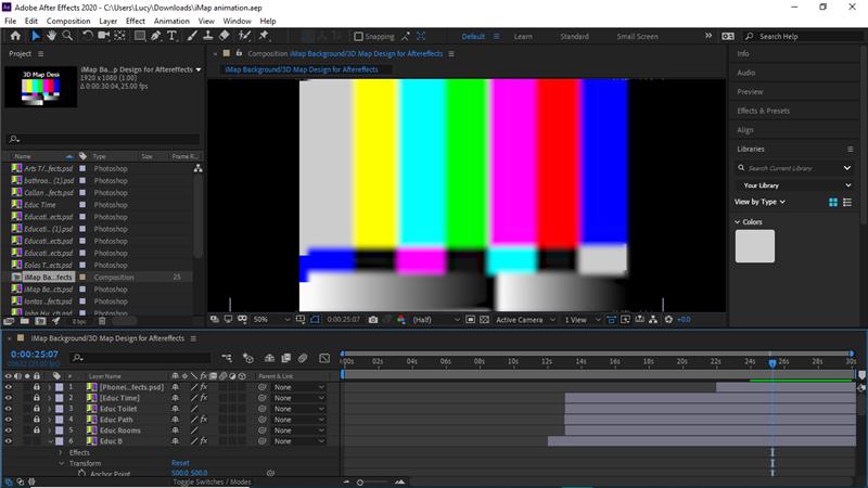 We have just over a week until our Project is due and it’s all finally coming together. Javad has been a huge help this past week. He has given us lots of guidance and allocated his free time to helping us. I began the AfterEffects animation on the new 3D map design for our video. I video chatted Lucy and Niamh on Tuesday to show them exactly what to do. We all want to do our part, which is great, but our work needs to be consistent with each other’s progress so we don’t alter the flow of the animation. My part of the animation went smoothly, however we ran into some issues when I tried to send them the AfterEffects file…